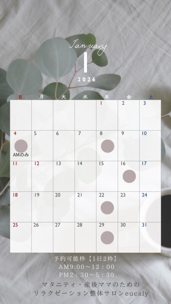 こんにちは!マタニティリラクゼーションeucalyの山田です。